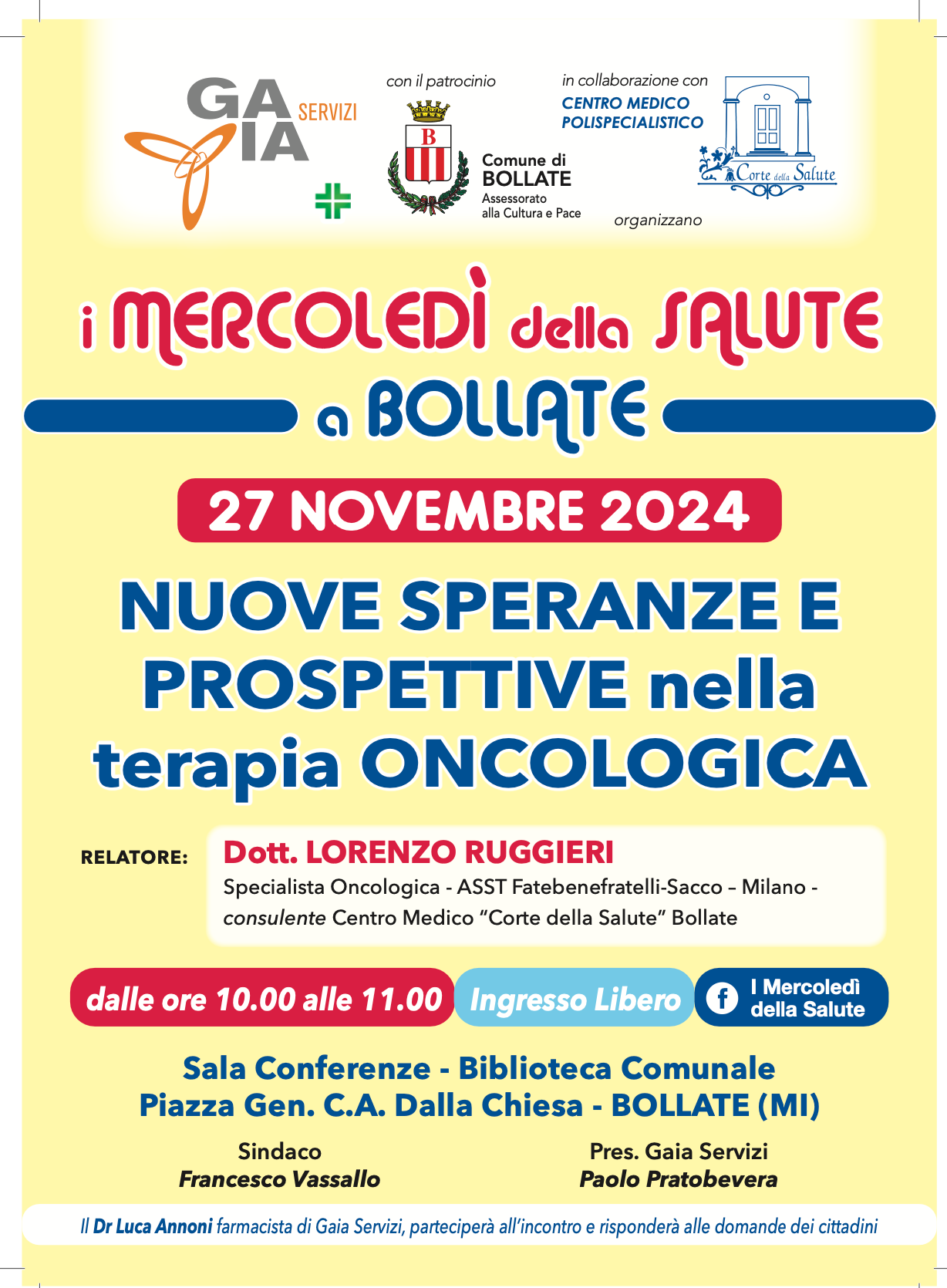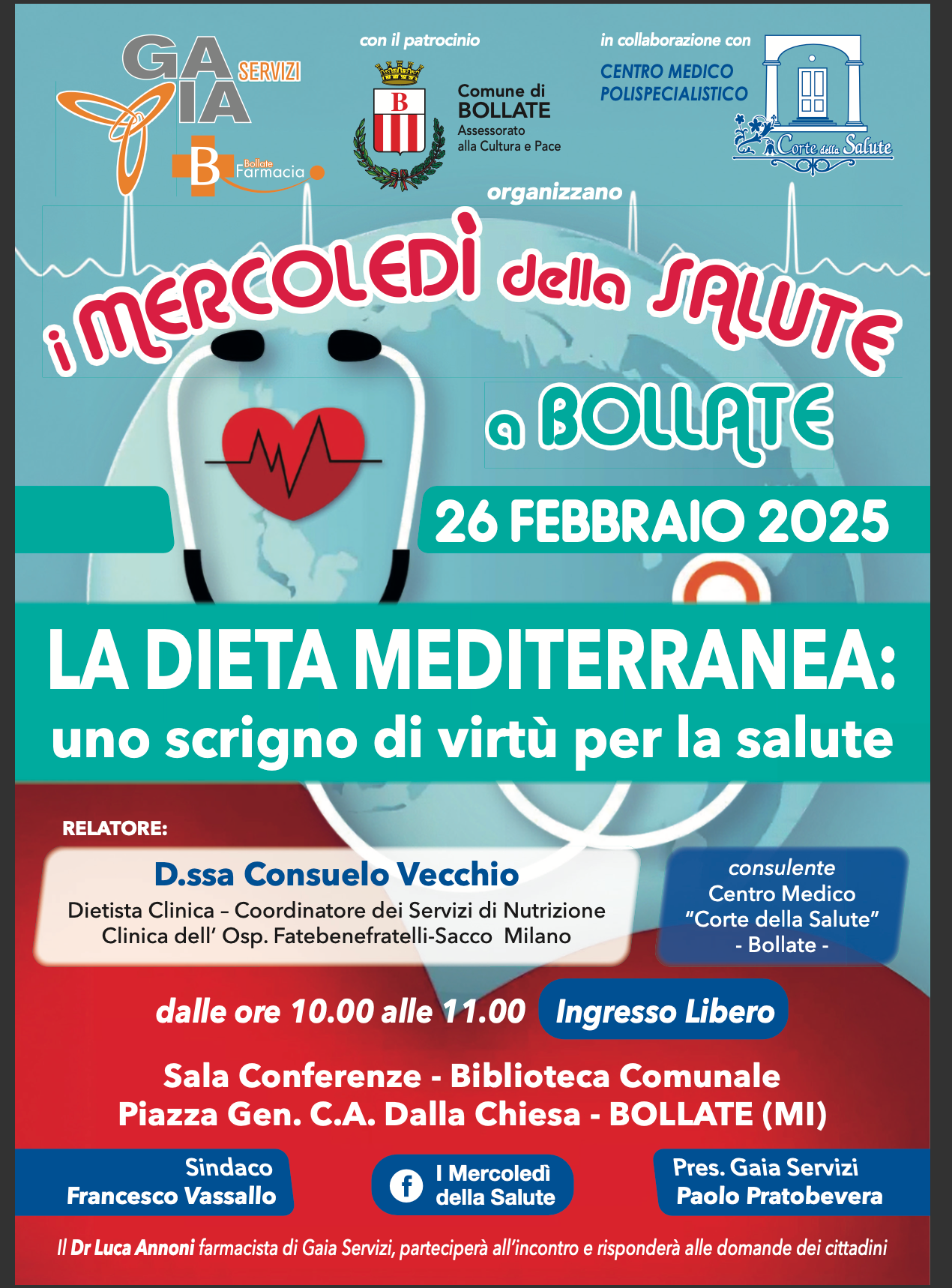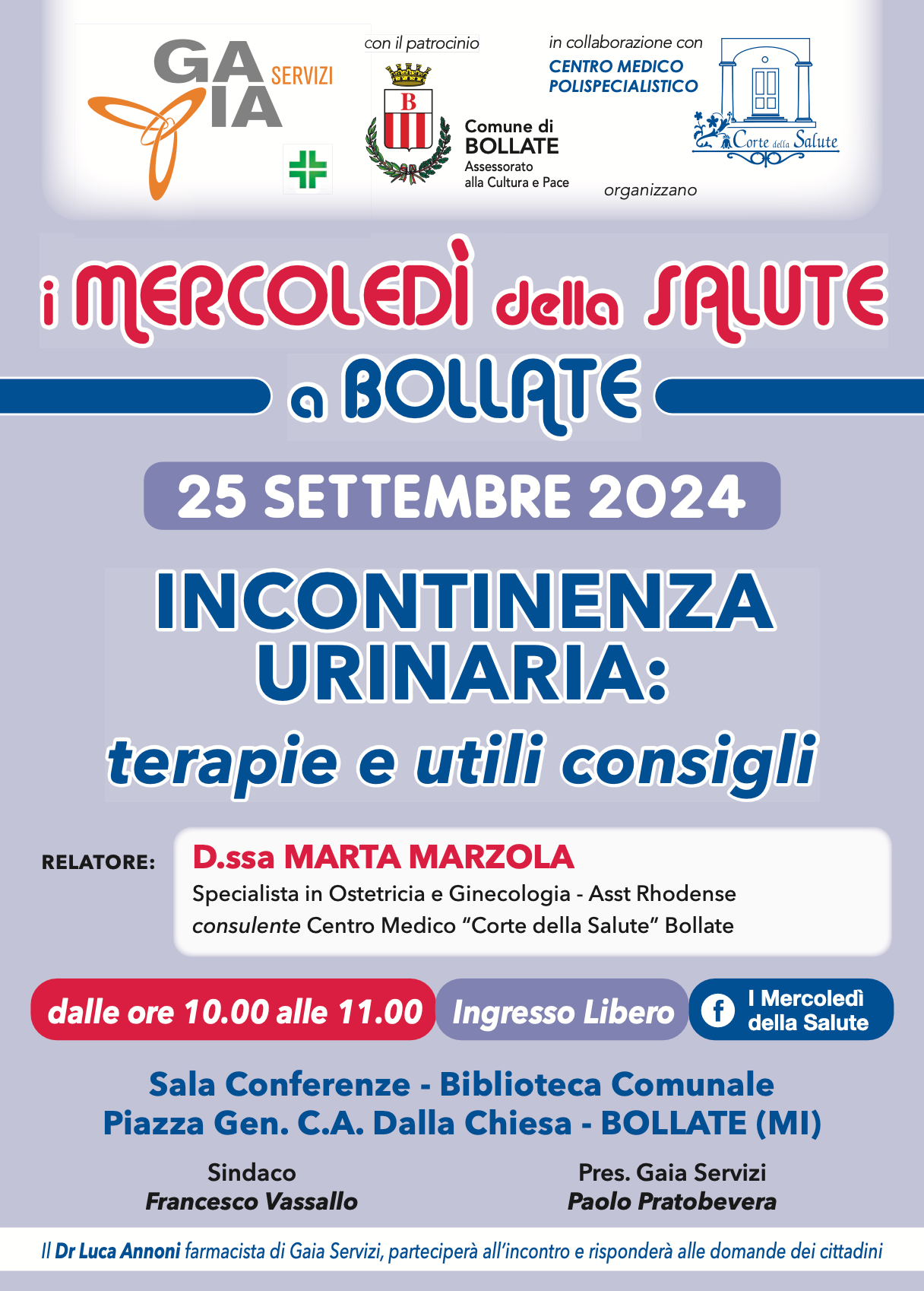 Riprendono con il mese di febbraio gli incontri di informazione medico-scientifica organizzati dalle Farmacie Comunali di Bollate in collaborazione con il Centro Medico "Corte della Salute" e con il patrocinio del Comune di Bollate - Assessorato alla Cultura e Pace.