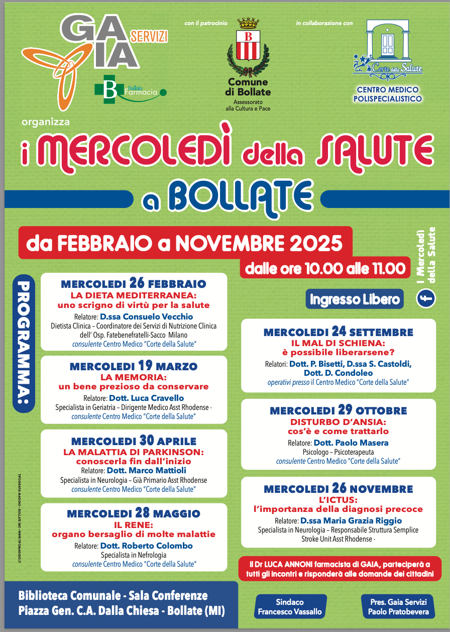 Il secondo incontro dei Mercoledì della Salute del 2025, anticipato rispetto al consueto ultimo mercoledì del mese, si è tenuto mercoledì 19 marzo in biblioteca a Bollate.